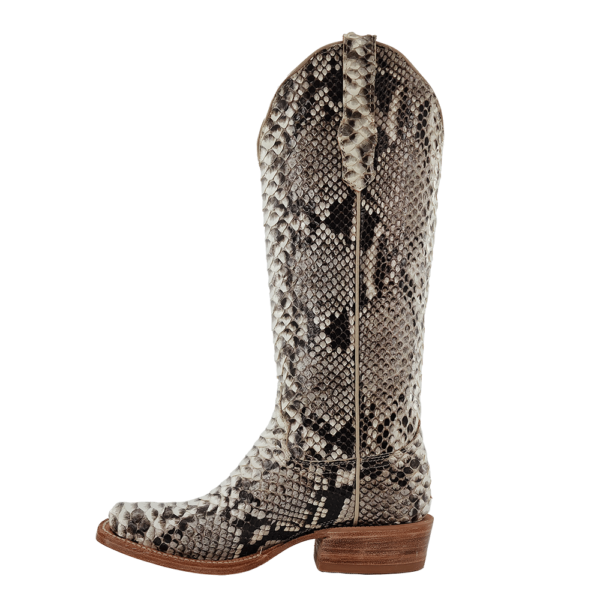 R. Watson presents these top and bottom python. These boots have the R. Watson comfort system, all leather stacked heel, counters, solid steel shank, and 10 iron outsole. 14" total in height.