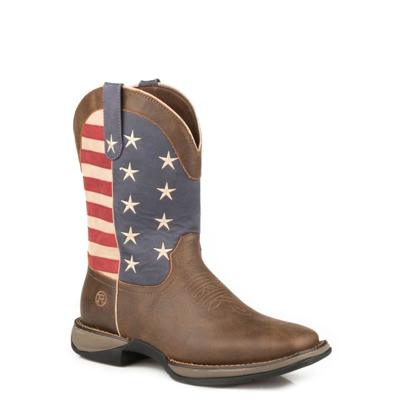 - ROPER | MEN'S AMERICAN FLAG BOOT WITH DISTRESSED BROWN LEATHER-BROWN