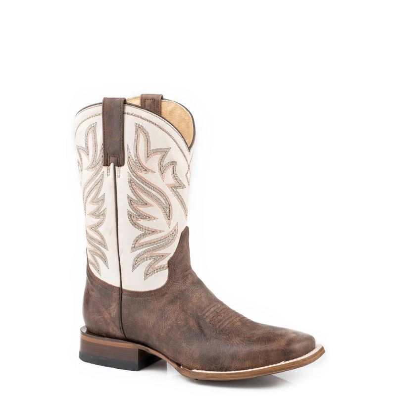 - ROPER | MEN'S LEATHER CONCEALED CARRY BOOT BURNISHED TAN VAMP WITH BLUE EMBROIDERED UPPER-TAN