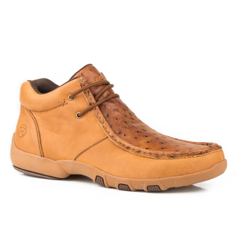 - ROPER | MEN'S SWIFTER SOLE SLIP ON TAN VINTAGE COGNAC LEATHER EMBOSSED OSTRICH-TAN