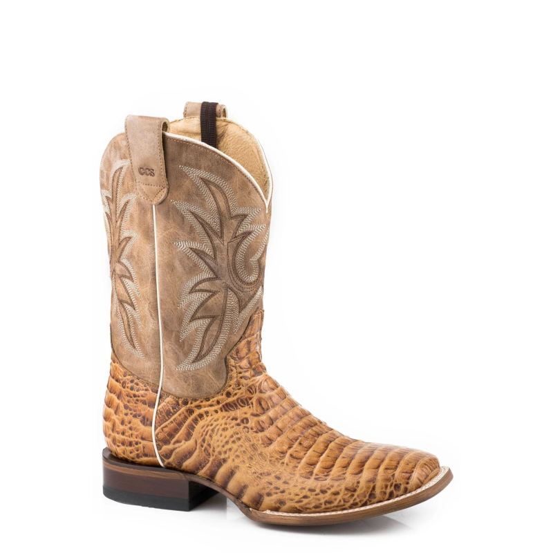 - ROPER | MEN'S EMBOSSED VINTAGE TAN OSTRICH VAMP SQUARE TOE BOOT WITH WHITE LEATHER SHAFT-TAN