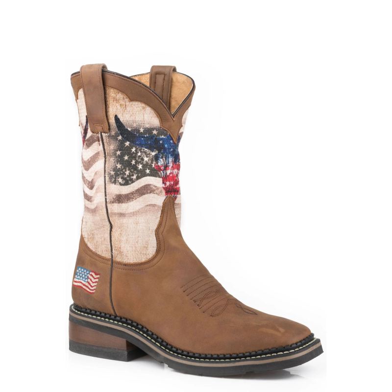 - ROPER | MEN'S PERFORMANCE LITE SOLE SLIP ON BROWN DISTRESSED LEATHER WITH REMOVEABLE INSOLE AND STIRRUP SHANK-BROWN