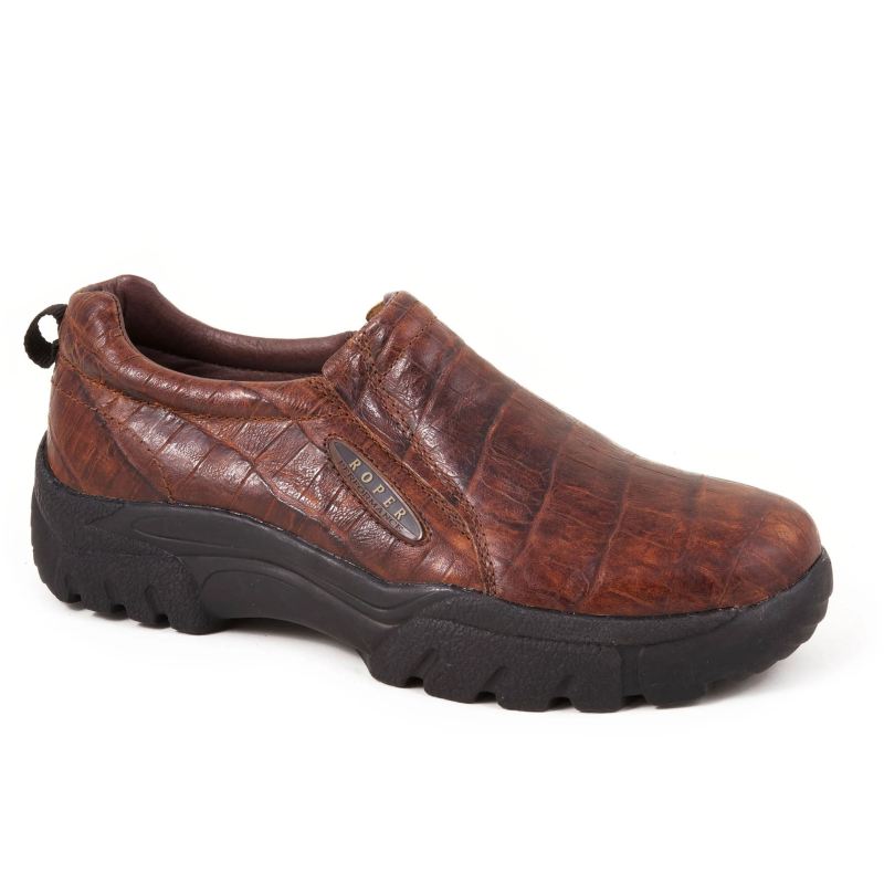 - ROPER | MEN'S VINTAGE BLACK EMBOSSED CAIMAN VAMP BIKER TOE WITH HARNESS-BROWN