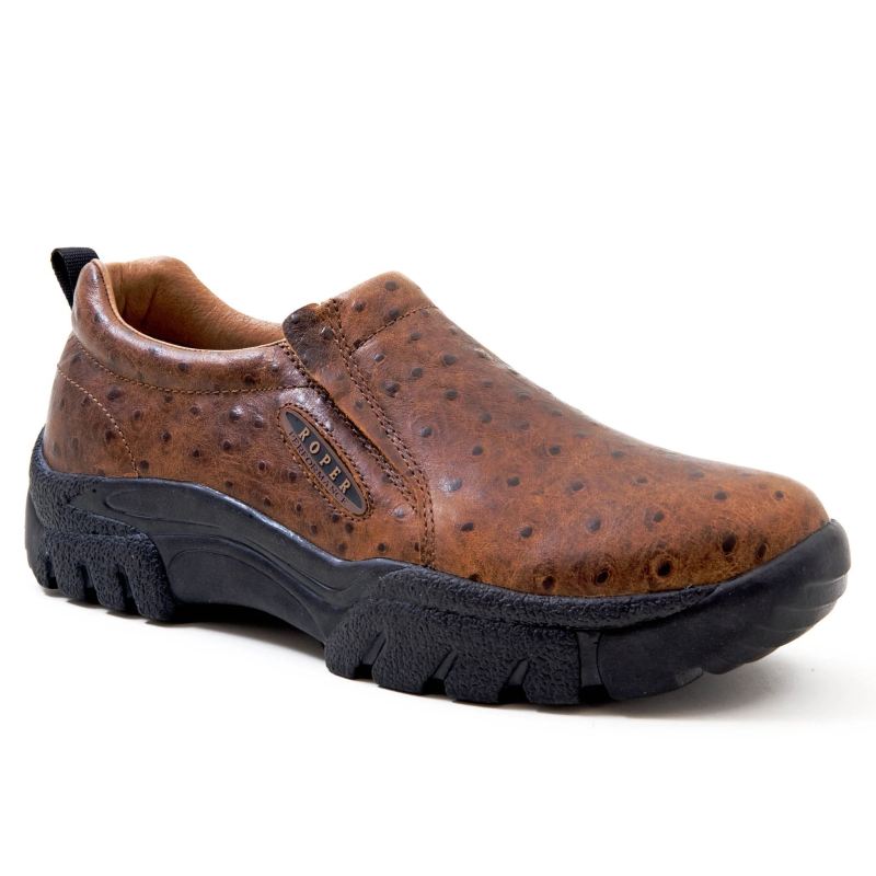- ROPER | MEN'S DRIVING MOC CHUKKA TAN VINTAGE LEATHER LEATHER EMBOSSED OSTRICH 2 EYELET LACE UP-TAN