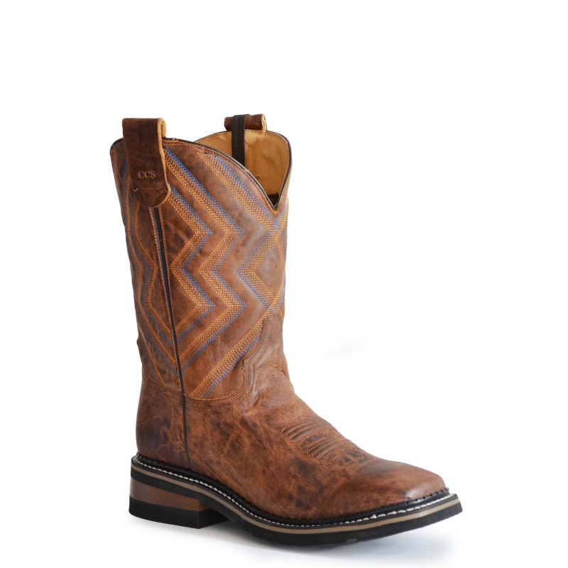 - ROPER | MEN'S LEATHER CONCEALED CARRY BOOT BURNISHED TAN VAMP WITH BLUE EMBROIDERED UPPER-TAN