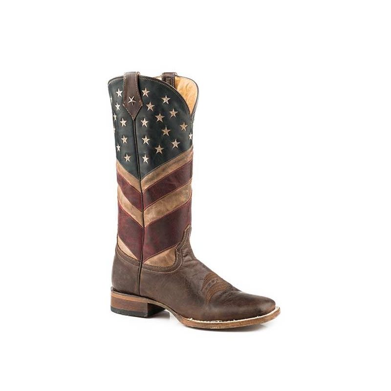 - ROPER | WOMEN'S VINTAGE BROWN LEATHER VAMP BOOT WITH WHITE LEATHER SHAFT-BROWN