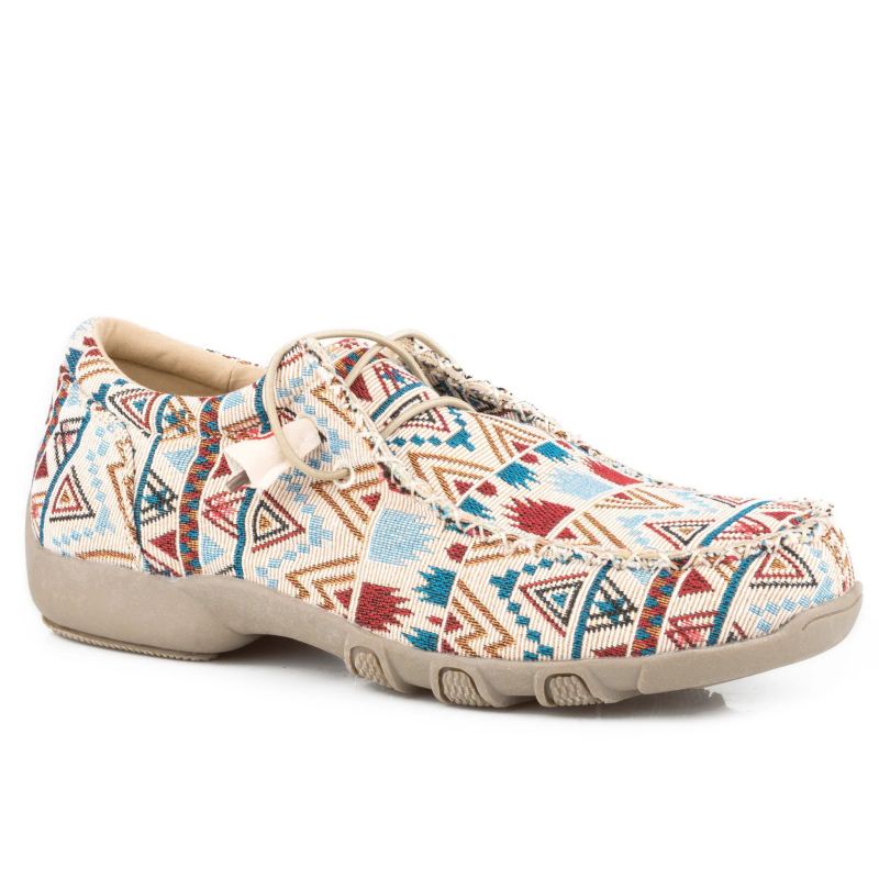- ROPER | WOMEN'S BEIGE AZTEC CANVAS CHUKKA WITH ELASTIC LACES-TAN