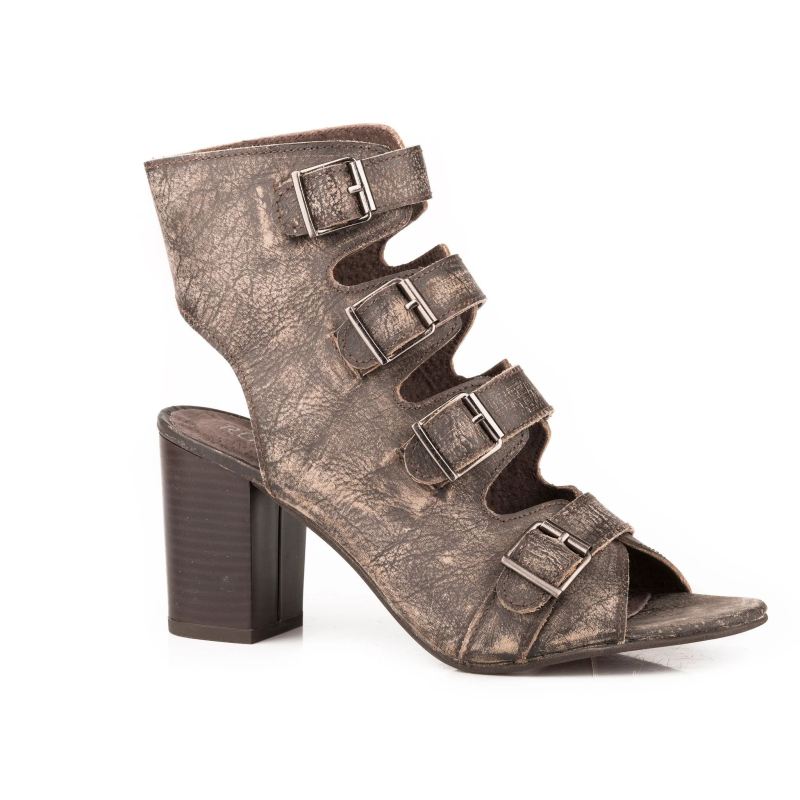 - ROPER | WOMEN'S FASHION SHORTY BOOT BLACK FAUX LEATHER AND EAGLE OVERLAY-BLACK