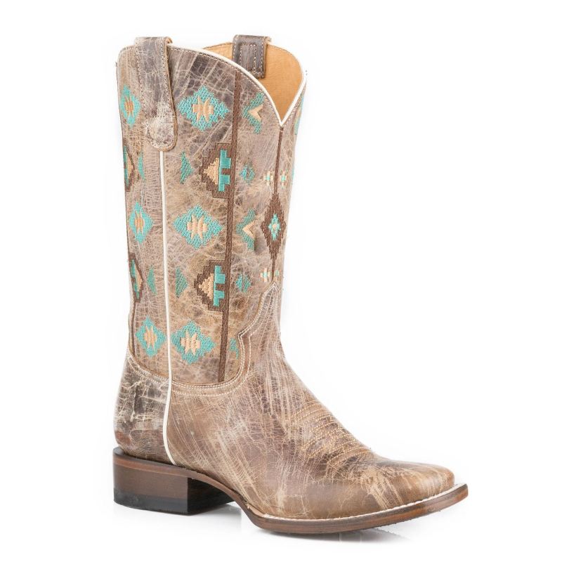 - ROPER | WOMEN'S BROWN VAMP SHAFT BOOT WITH NATIVE EMBROIDERED SHAFT-BROWN