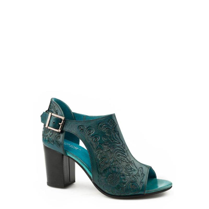 - ROPER | WOMEN'S FASHION MULE BROWN FLORAL TOOLED LEATHER WITH OPEN TOE AND BACK STRAP-BROWN