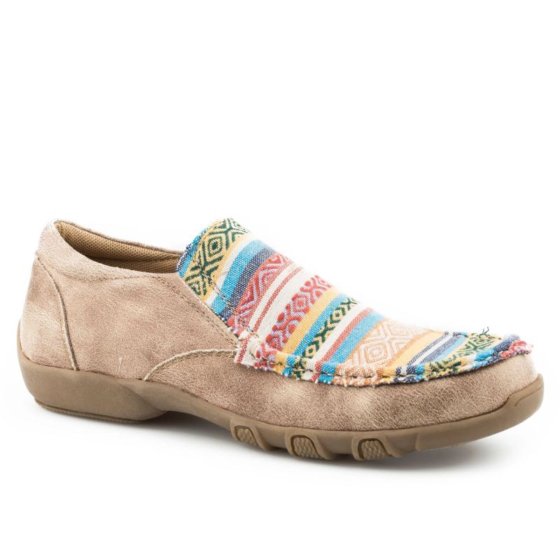- ROPER | WOMEN'S FASHION COWBOY BOOT BROWN FAUX LEATHER WITH SIDE FRINGE AND WING TIP AND CROWN OVERLAY-BROWN