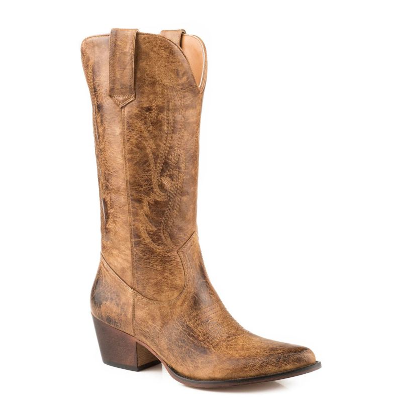 - ROPER | WOMEN'S BROWN VAMP WITH FLAG SHAFT LEATHER SHORTY-BROWN