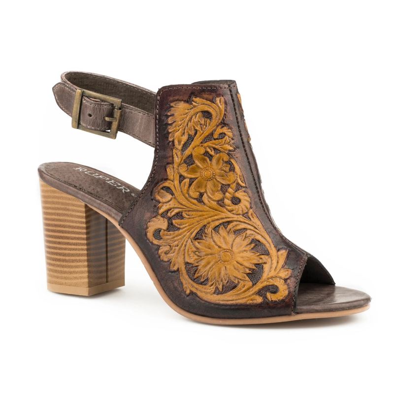- ROPER | WOMEN'S TAN FLORAL TOOLED LEATHER FASHION OPEN TOE SANDAL-TAN