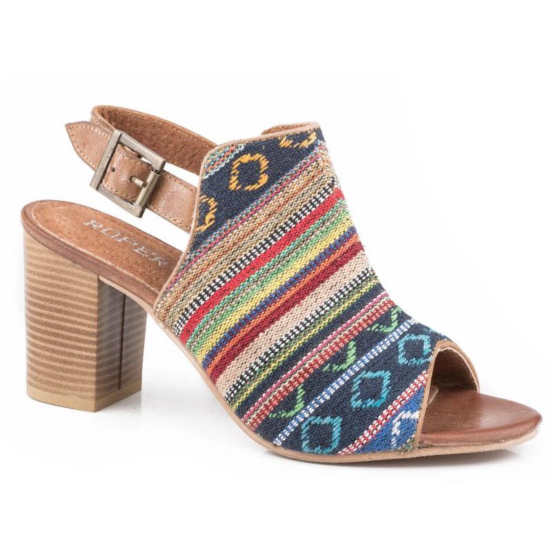 - ROPER | WOMEN'S LEATHER COWBOY BOOT WAXY BROWN VAMP WITH NATIVE EMBROIDERED UPPERBROWN