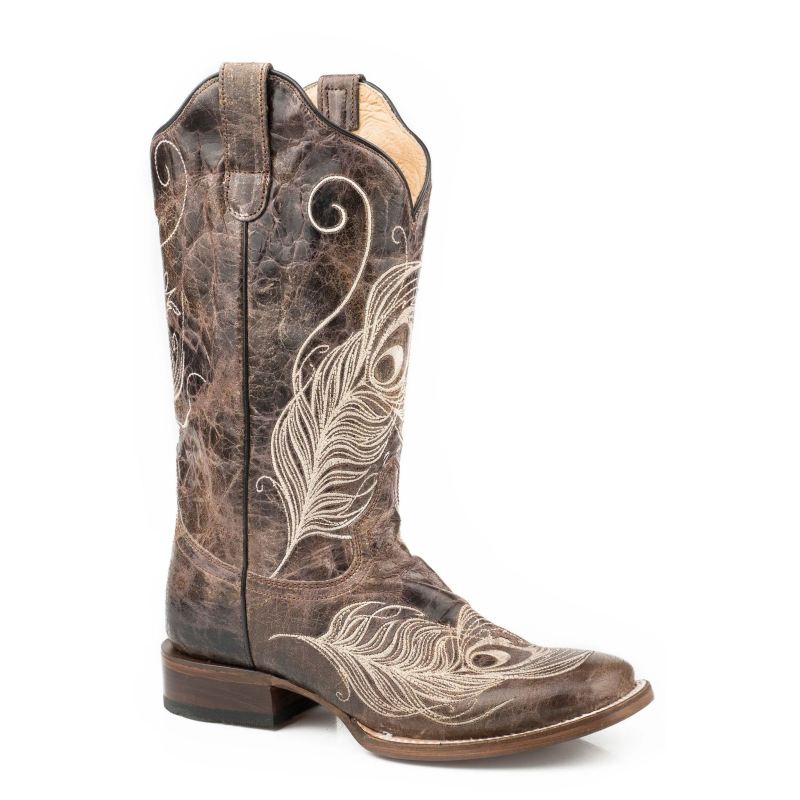 - ROPER | WOMEN'S FASHION COWBOY BOOT BROWN FAUX LEATHER WITH BLACK GLITTER UNDERLAY-BROWN