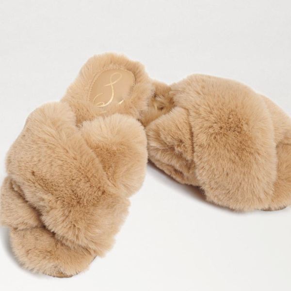 - Sam Edelman | Men's Jeane Criss Cross Slipper-Camel Plush Fur