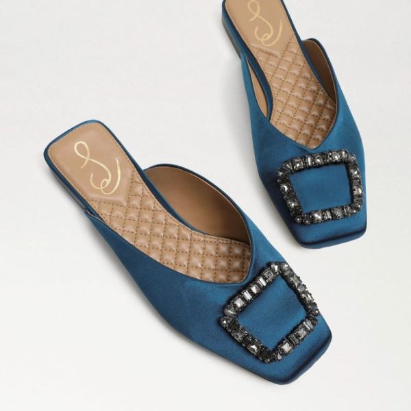 - Sam Edelman | Men's Lavina Buckle Mule-Peacock Blue Satin