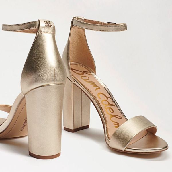 - Sam Edelman | Men's Nattie Platform Heel Sandal-Gold Leaf Leather