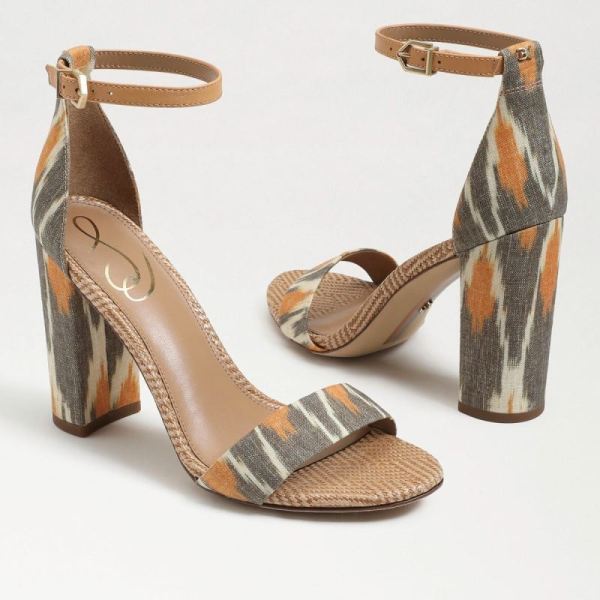 - Sam Edelman | Men's Yanelli Block Heel Sandal-Toffee Satin
