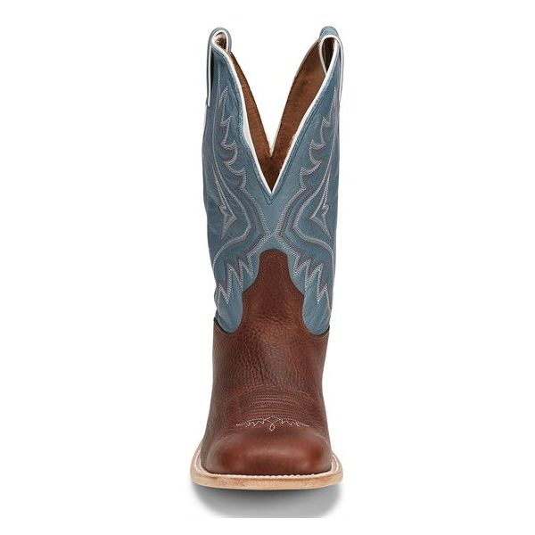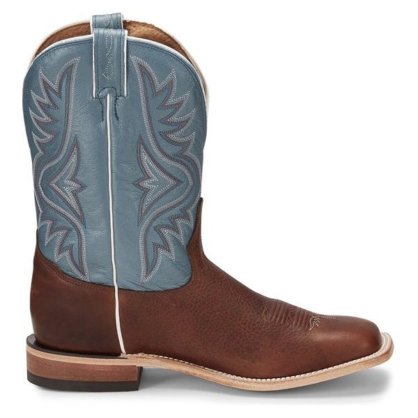 The textured golden brown square toe foot and unit heel offer a relaxed fit in the stirrup and the cushioned insole provides support and comfort throughout the day. The double stitch welt around the leather outsole guarantees durability so you can put years into this boot.