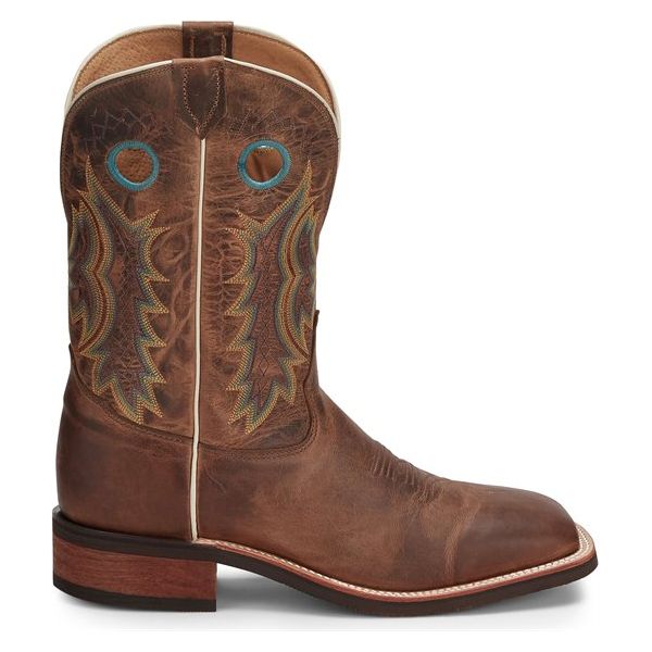 Its gold and turquoise stitching along the upper and ivory piping around the deep cut collar provide this casual boot with colorful edge and the square toe and unit heel allow for a relaxed fit. The cushioned insole provides support and comfort throughout the day and its double stitch welt around the leather outsole guarantees durability so you can put years into this boot.
