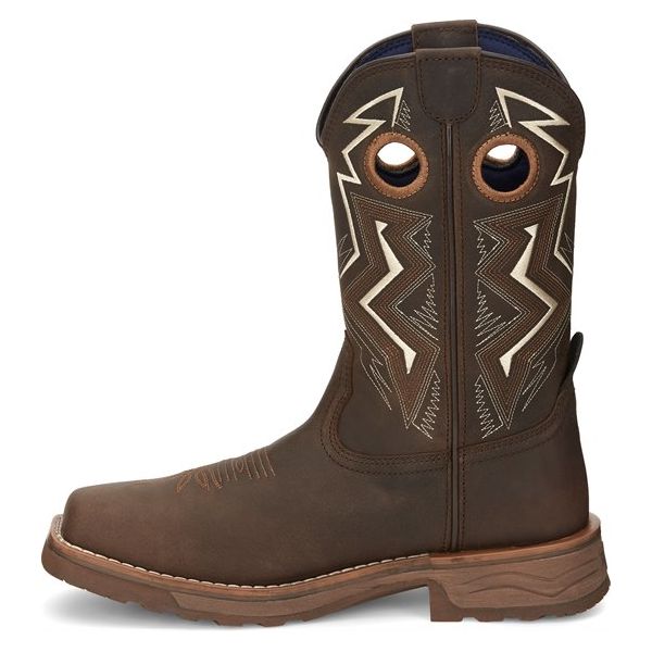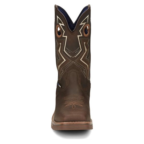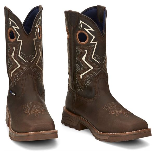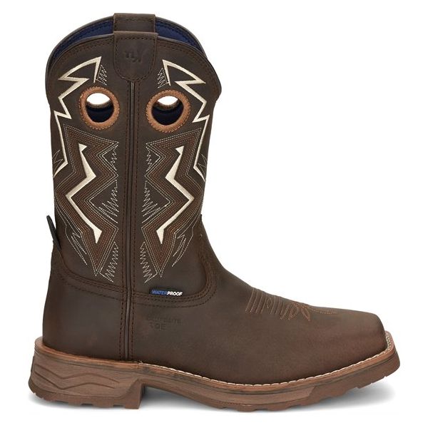 Featuring a high-energy stitching design on a walnut brown cowhide upper, it's designed with waterproof leather, a wide square toe and a TLX removable orthotic with Dri-Lex cover insole inside the boot for comfort. The composite toe helps protect from heavy loads and the TLX Rubber with X Stabilizer outsole provides a confident grip on the ground. This boot is Electrical Hazard rated and designed with a non-metallic shank.