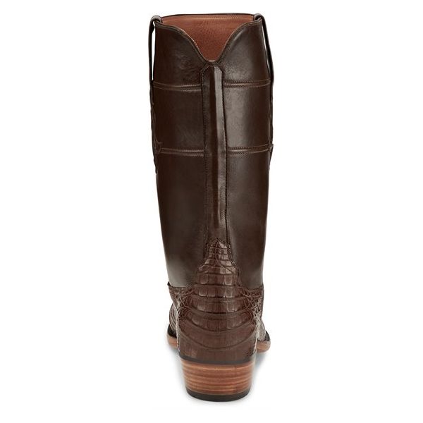 The 12" Kapono boot from the Signature Series features an exotic Belly Caiman foot and a smooth leather shaft accented with a refined diamond-stitch band. This statement boot is finished with a leather outsole and a 1 3/8" long base heel. This style is proudly Made in the USA from global parts.