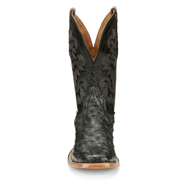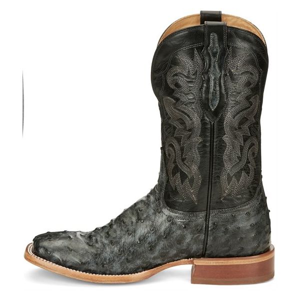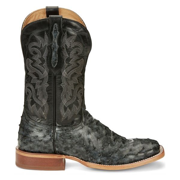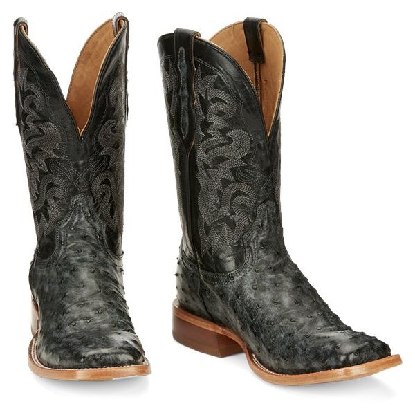 The Moore in Grey Full Quill Ostrich boasts handsome details and distinctive style. Bring tradition to your step with the exclusive new finish that enhances each quill for a dapper effect. The Moore features a wide square toe encircled with a bold double stitch welt and Grey Full Quill Ostrich vamp. The Royal Blue Goat upper tops it with an electric and contrasting top stitch design. Step into comfort with the removable Cushion Comfort Package and classic Tony Lama craftsmanship.