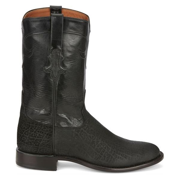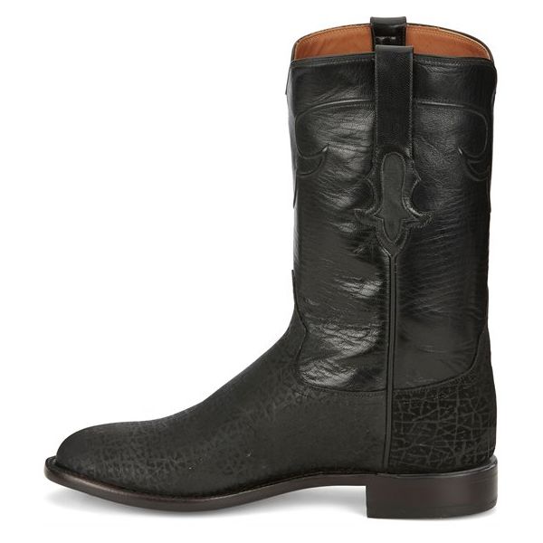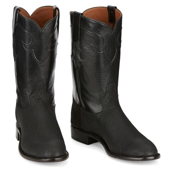 The stitched leather shaft combines with the hippo roughout foot for a monochromatic look with rich texture. It's crafted with a 1 1/8" roper heel and a round toe, and features a leather insole for breathability. This style is proudly Made in USA with global parts.