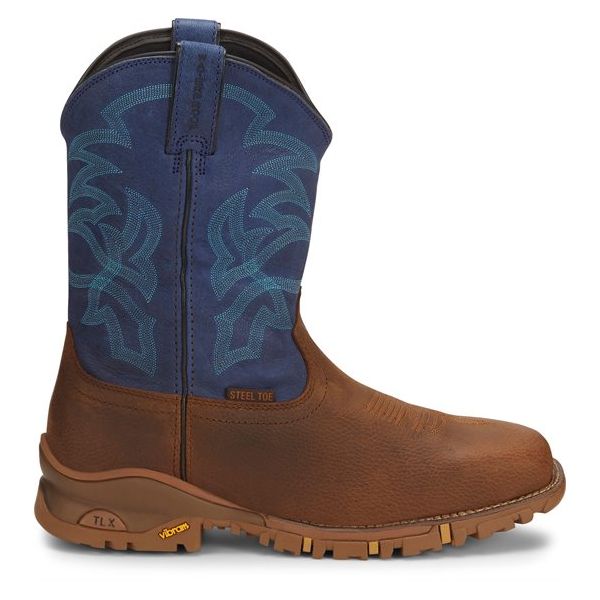 From our TLX Western Work Collection, this steel toe boot is electrical hazard rated. It's waterproof and equipped with an Ortholite dual density insole for comfort and a durable TLX Vibram outsole for outstanding traction.