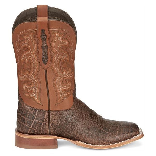 Made with the expertise of over a century of iconic style. The 11" Rowel Brown Safari boot from the 1911 collection continues our standard of high quality, holding true to the legacy that Tony Lama started over 100 years ago. It features a deep brown vamp complemented by a cognac upper, and a 1 1/8" walking heel with spur ledge. Our skilled artisans use the time-honored technique of lemonwood peg assembly to attach the leather sole to every boot by hand for long-lasting durability. Inside, our Cushion Comfort system features a leather insole equipped with a removable insert. The wide square toe and double-stitch welt complete this timeless look.