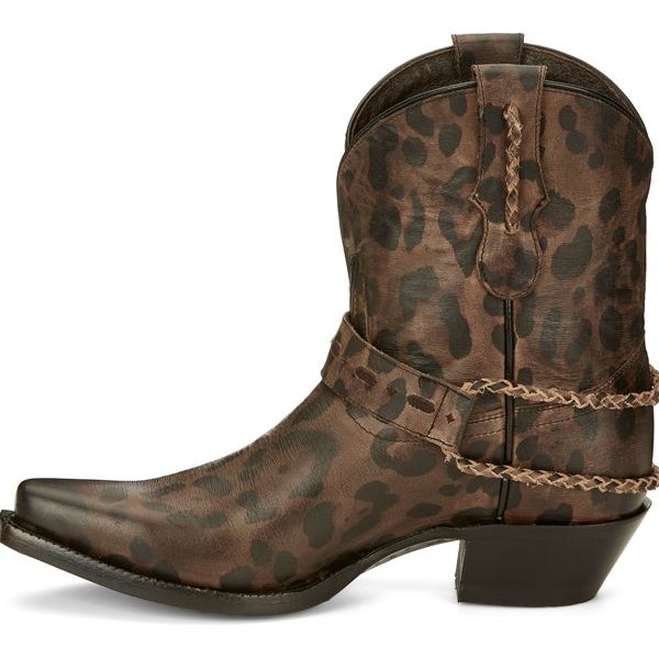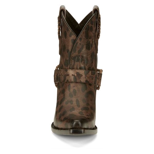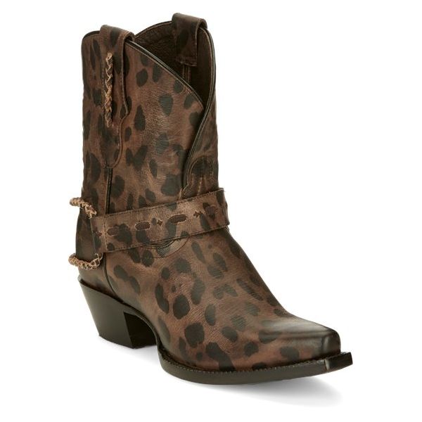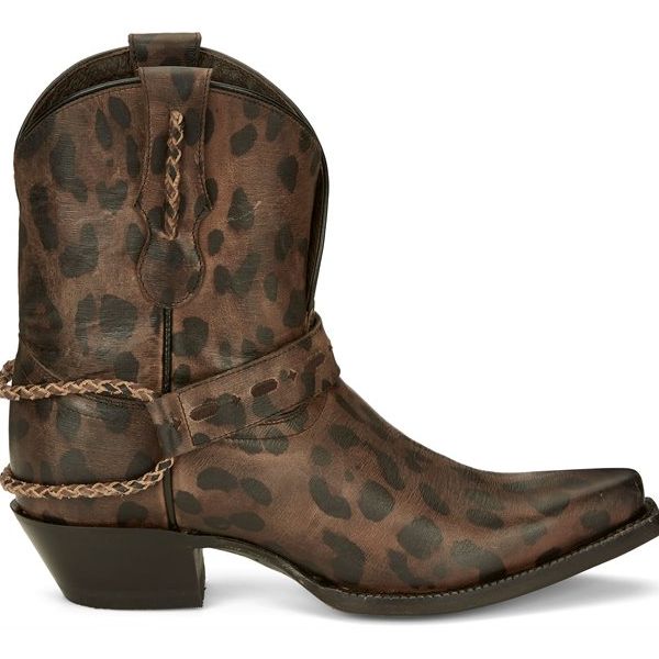 The muted cheetah print cowhide leather gives this boot a subtle exotic touch, and the reversible harness strap is adjustable so you can style it your choice of three different ways for a unique look wherever you go.