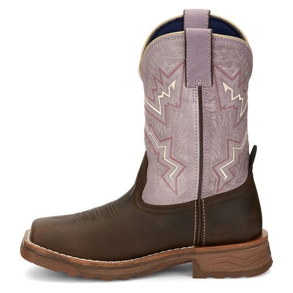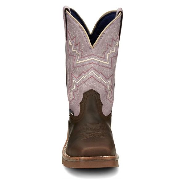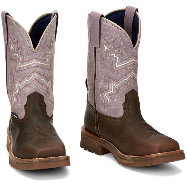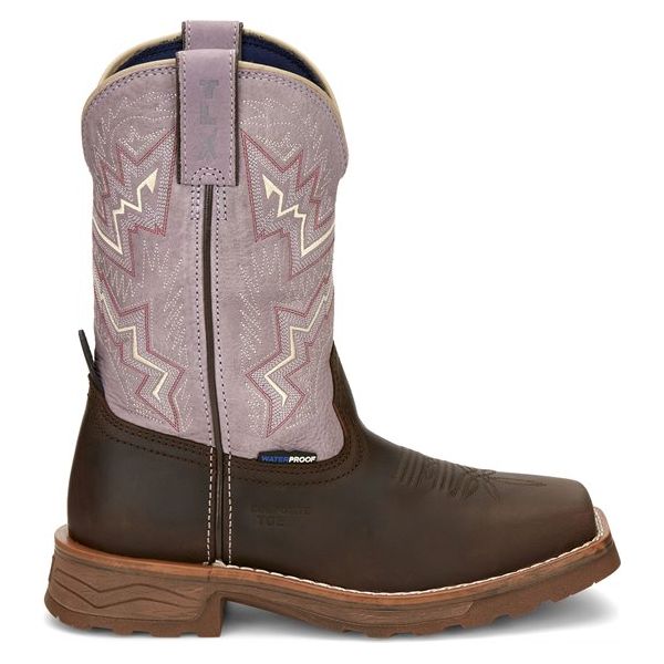 Crafted in light purple and brown waterproof cowhide leather with a composite safety toe and a wide square toe shape, this boot is equipped with comfort inside, thanks to our TLX removable orthotic with Dri-Lex cover insole. The TLX Rubber with X Stabilizer outsole will give you a confident grip on the ground throughout a hard day's work. This boot is Electrical Hazard rated and features a non-metallic shank.