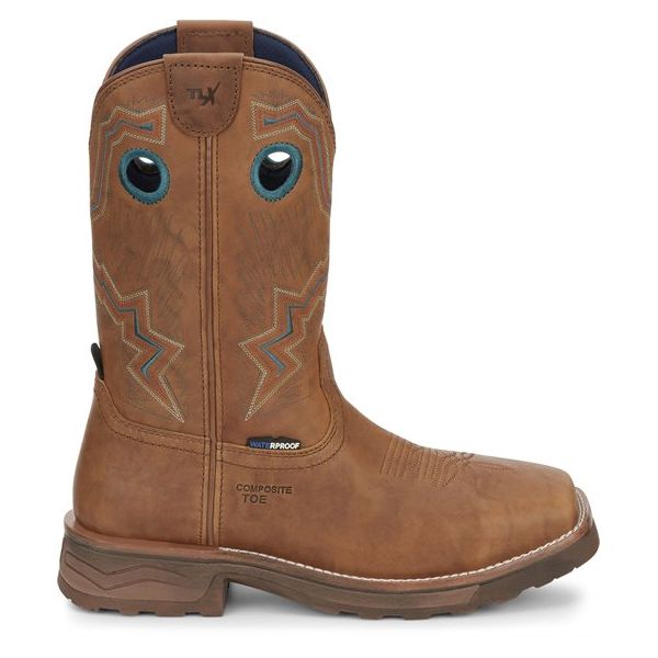 Crafted in golden brown waterproof cowhide leather with a composite safety toe and a wide square toe shape, it's equipped with comfort inside, thanks to our TLX removable orthotic with Dri-Lex cover insole. The TLX Rubber with X Stabilizer outsole will give you a confident grip on the ground throughout a hard day's work. This boot is Electrical Hazard rated and features a non-metallic shank.