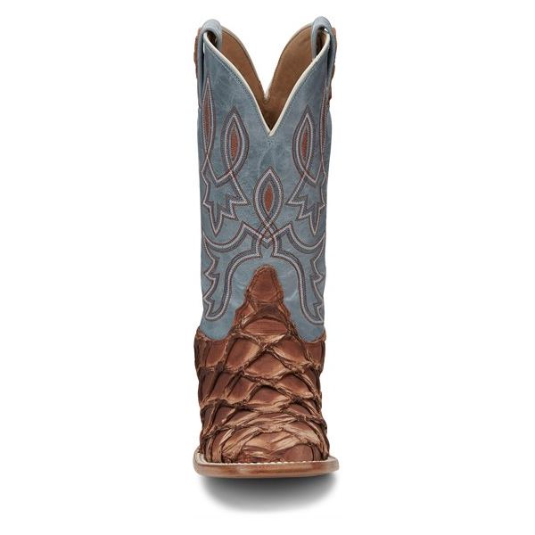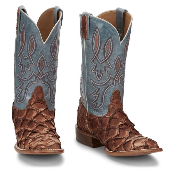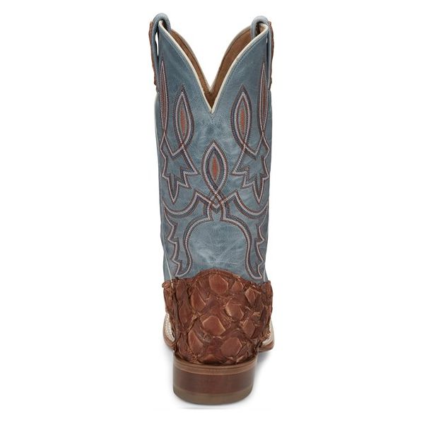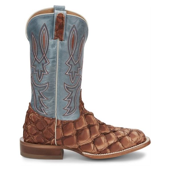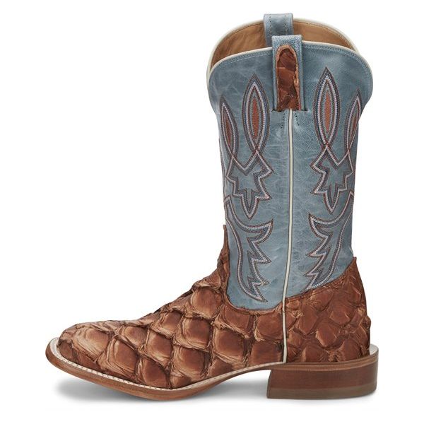 This 11" boot is embellished with a coordinating stitch pattern on the gorgeous sky blue goat leather upper. Featuring a low profile square toe, it's equipped for exceptional comfort and support inside with a Full 10 Iron Leather with Removable Cushion Comfort Package Insert insole. This style is proudly Made in the USA with global parts.