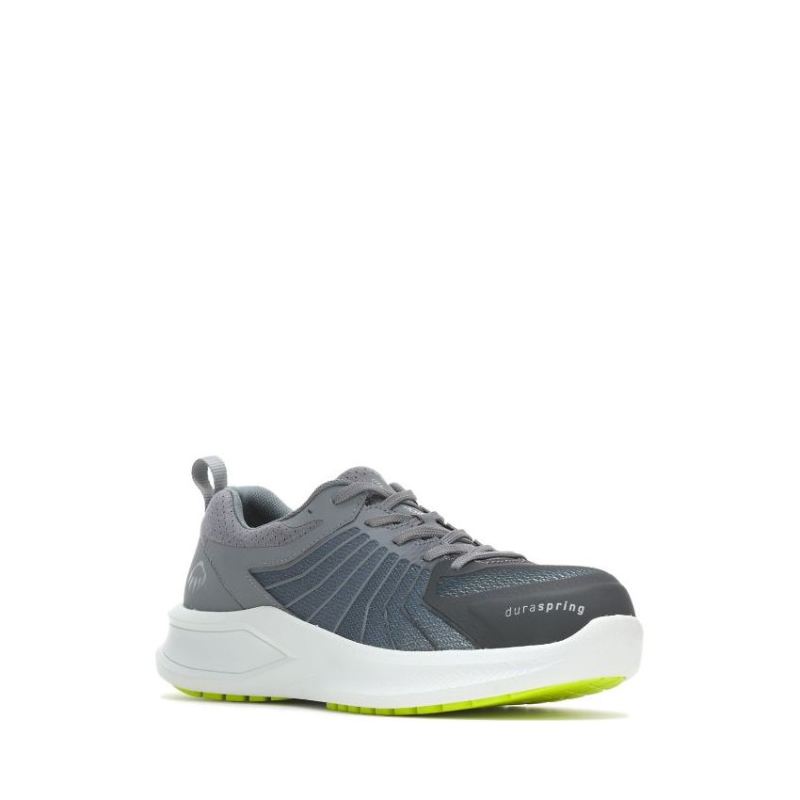 The Wolverine Bolt is the first-ever safety toe athletic shoe with the comfort of Wolverine DuraShocks and Wolverine DuraSpring cushioning, making it the most comfortable safety toe shoe, guaranteed. The outsole is specifically tuned for slip resistance, with extended pads to increase surface contact with the ground. The pads also feature an angled pattern to channel away liquids and contaminants. Wolverine DuraShocks technology absorbs shock and returns energy for all-day comfort. DuraSpring cushioning provides long-lasting, dynamic cushioning, retaining more than 40% rebound than standard EVA.