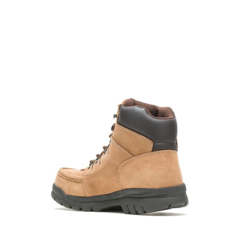 Good looks and the grit to endure, these moc-toe work boots cushion and protect for all-day comfort. Lightweight with a durable molded insole, the boots have a non-conductive, protective safety toe.