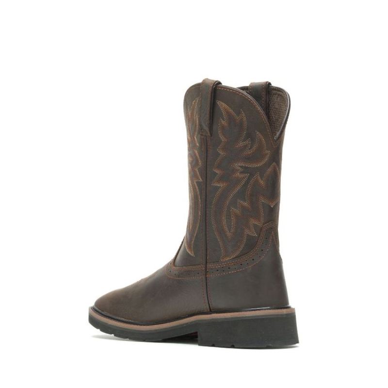 The Rancher wellington features a square-toe design and easy-on easy-off style for comfortable and convenient everyday wear with steel-toe protection.
