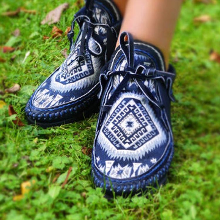 These beautiful leather moccasins combine style and functionality. An enormous amount of care and energy goes into making each moccasin. They are totally unique, unbelievably comfortable, breathable and durable.
