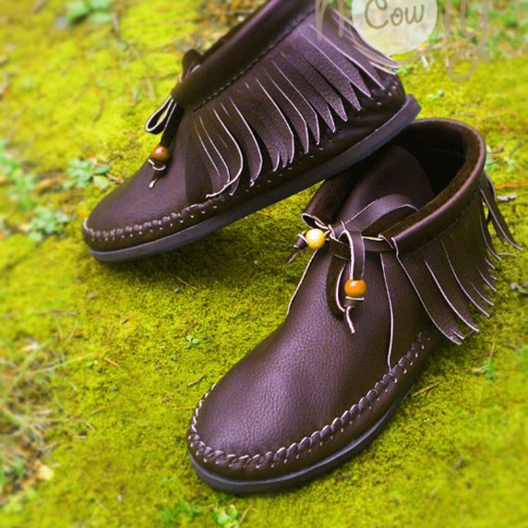 These beautiful leather moccasin boots combine style and functionality. An enormous amount of care and energy goes into making each moccasin. They are totally unique, unbelievably comfortable, breathable and durable.