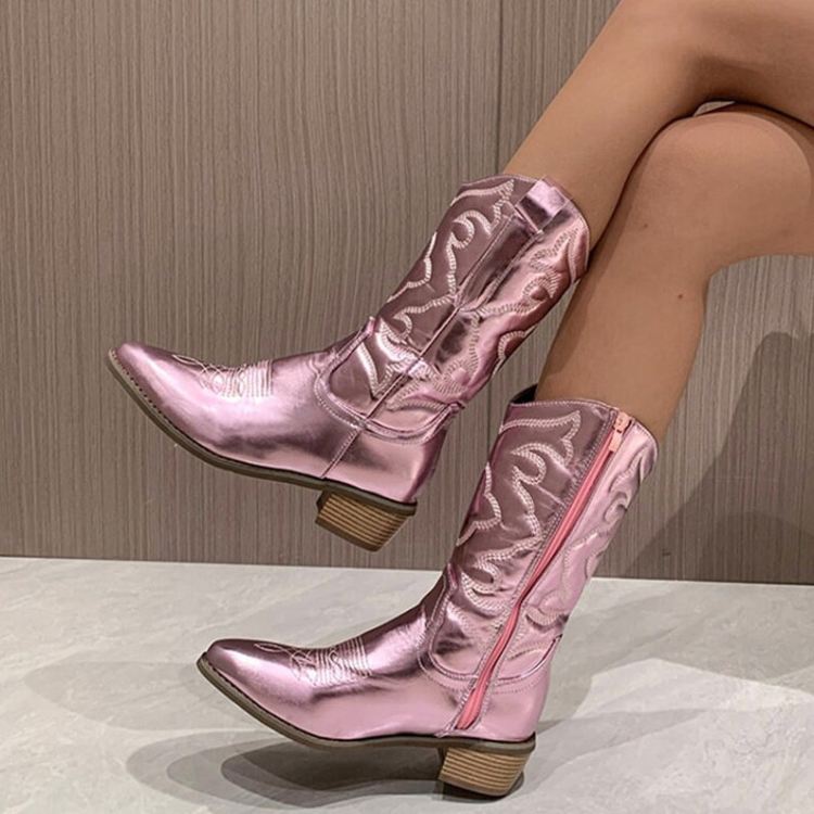 - Women's Elegant Cowgirl Boots Genuine Leather Shoes High Thick Heel | Canada