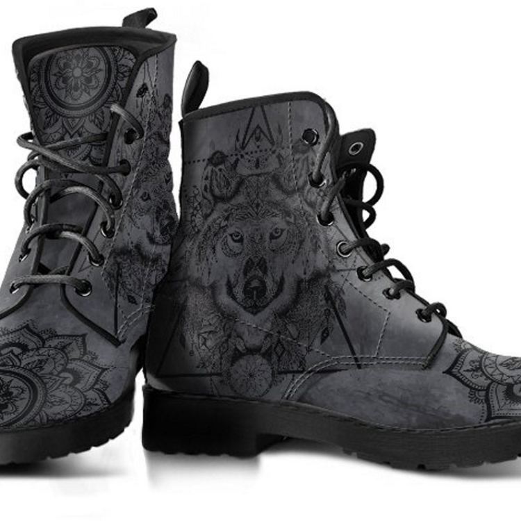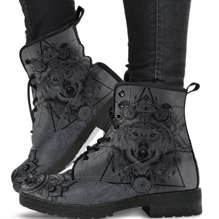 - Women's Dark Gray Boots Wolf Mandala Fashion Vegan Leather | Canada