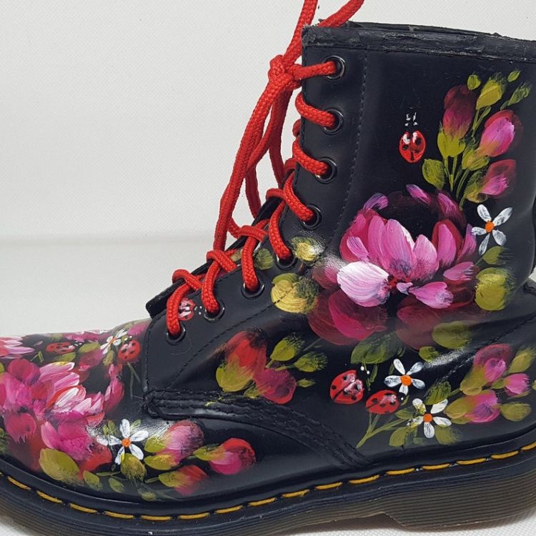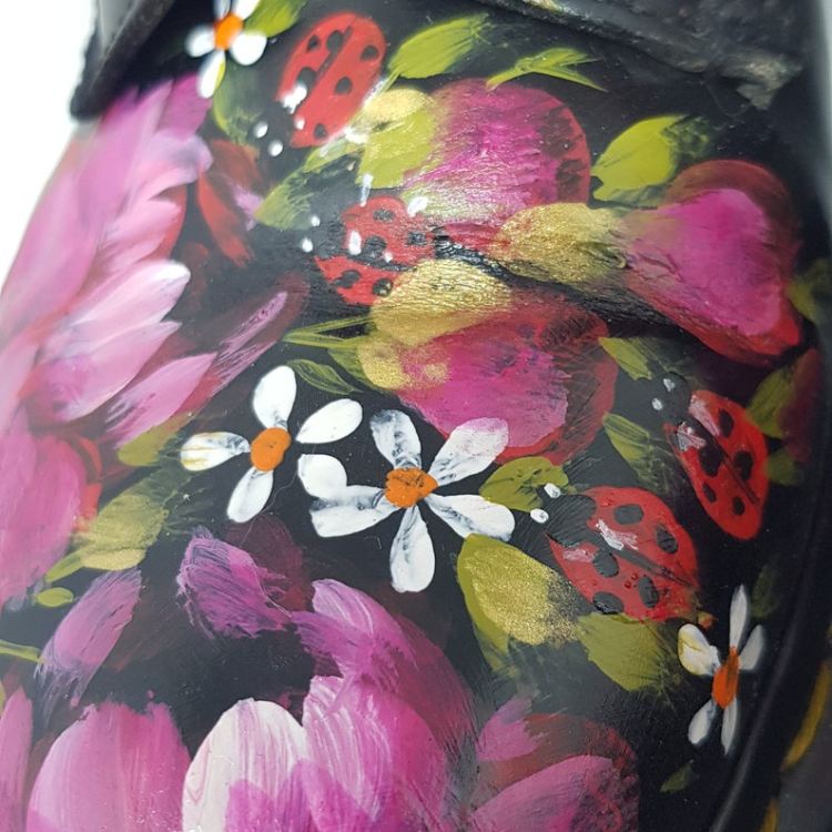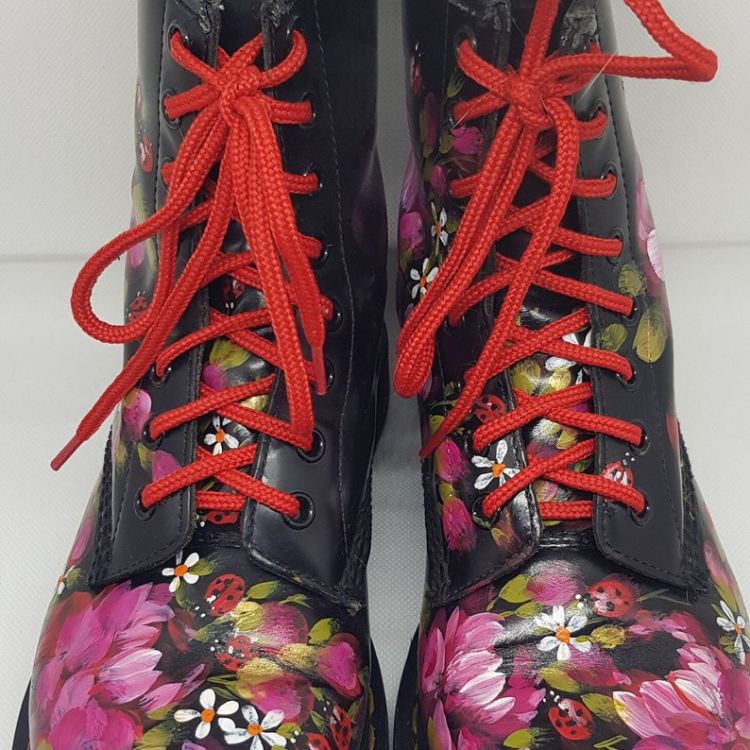 The right boot is painted differently to the left boot, both are painted on both the inside and outside.
