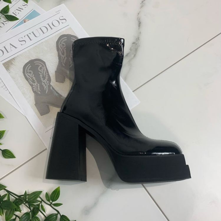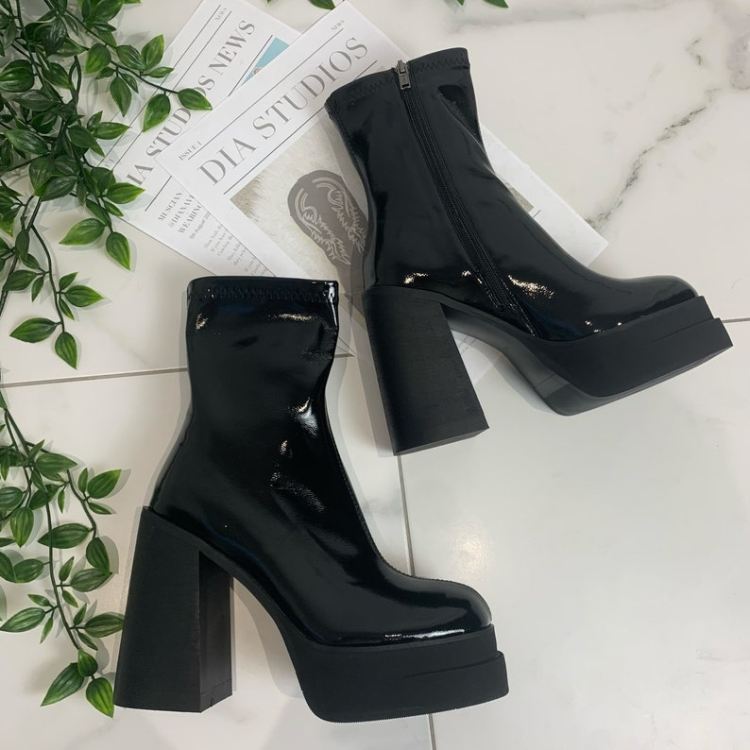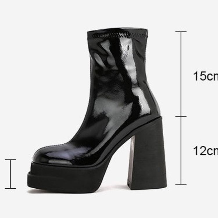 - Women's Vintage Ankle Boots Handmade Ankle Boots Chunky Heel Glossy | Canada