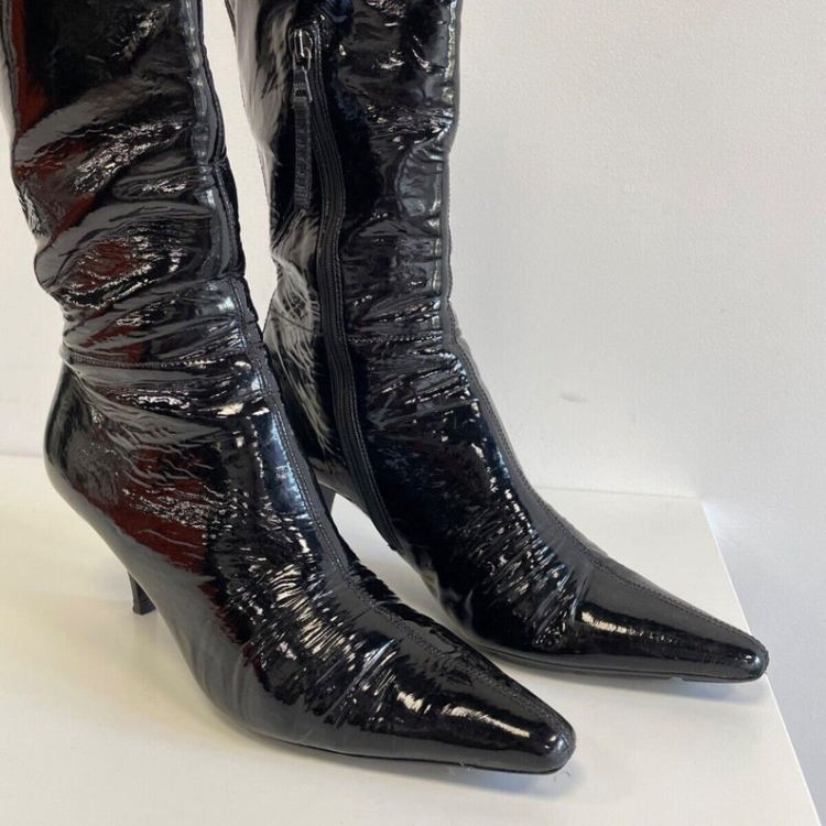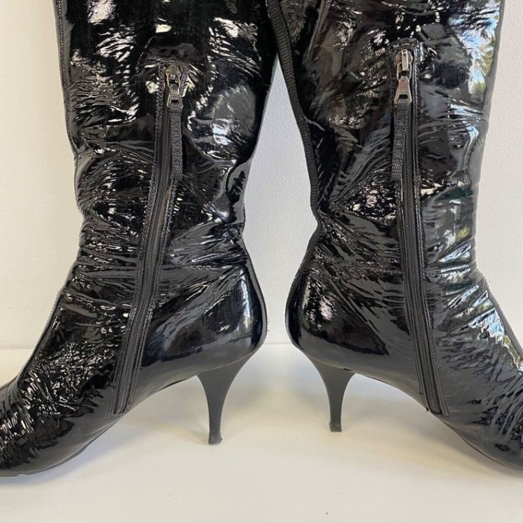 I can make out the size even though it did not picture well. The zippers are good. Soles have lots of life. Heels are not worn down. Insides do show discoloration from being worn in. Maybe just need a new insole.