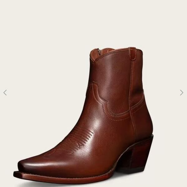The Daisy is a classic zip bootie with an edge and features a 2 " heel. The snip toe and toe bug stitching bring attitude and confidence. A zipper tucked away on the inside of the boot makes for easy on and off comfort right out of the box. We put all of the things we know into this zip beauty, and it shows. Available in calfskin, bovine, and Sienna suede.