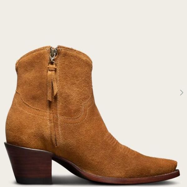 The Daisy is a classic zip bootie with an edge and features a 2 " heel. The snip toe and toe bug stitching bring attitude and confidence. A zipper tucked away on the inside of the boot makes for easy on and off comfort right out of the box. We put all of the things we know into this zip beauty, and it shows. Available in calfskin, bovine, and Sienna suede.