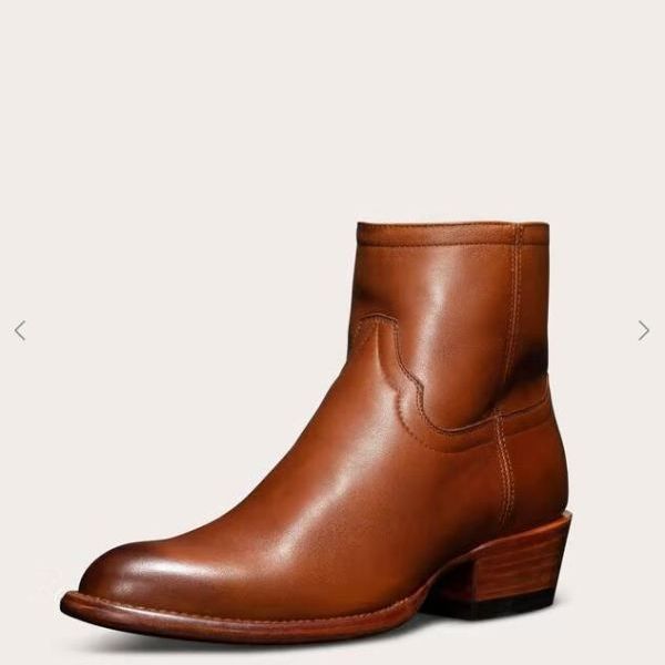 A modern zip bootie with pure, western roots, The Jenny has a traditional round toe, and a flat 6" shaft that makes it extra versatile with flared or cuffed jeans. A subtle inside zipper makes them easy to pull on and off, and a 1 " classic western heel anchors its clean, sophisticated profile.