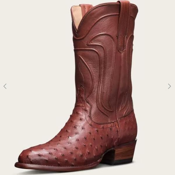 The Jessie is a beautiful exotic cowgirl boot, handcrafted in supple, full-quill ostrich leather. Sweeping, hand-corded details grace the cowgirl shaft and classic angled heel to complete a versatile boot profile.