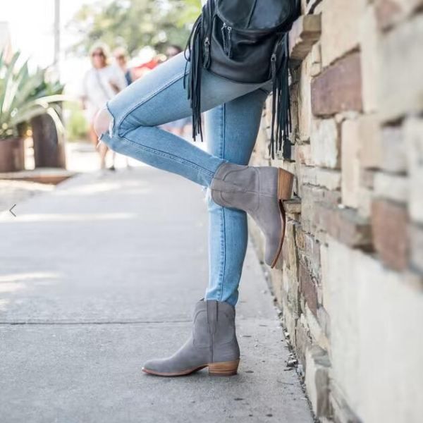 The Lucy might be the most versatile, handmade western bootie ever made. Supple & glove-like water-resistant suede leather wrap an elegant ankle boot profile featuring subtle hand-cording and a slightly flared western shaft.